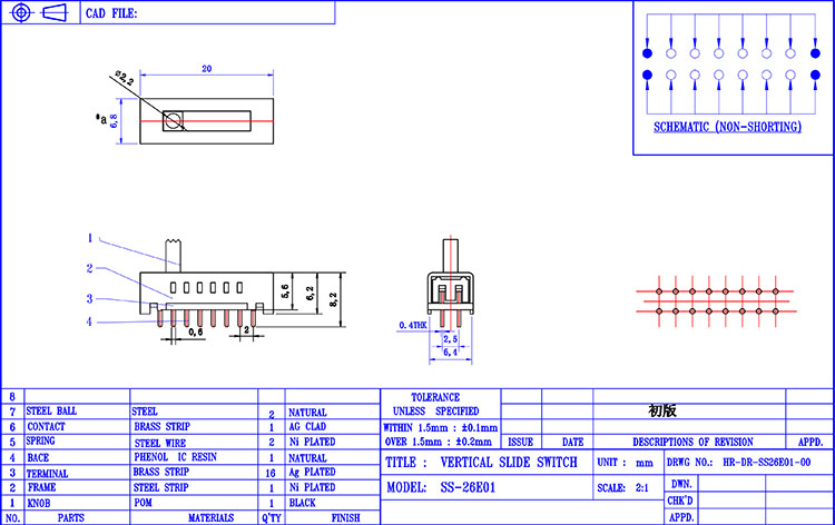 开关类型:竖拨拨动开关