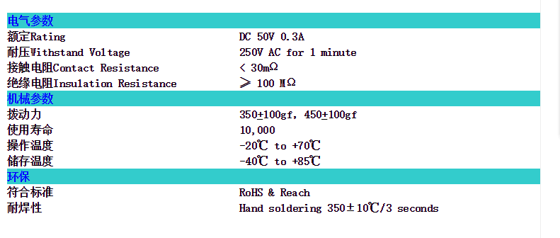 额定电流:DC 0.3A